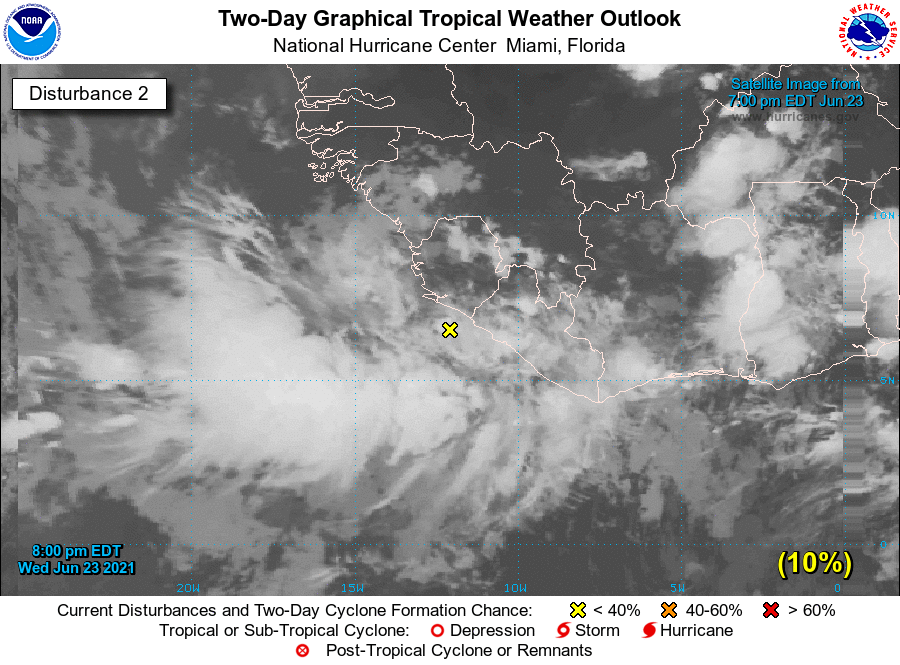 A tropical wave is expected to move off the coast of Africa overnight and on Thursday. Some development is possible through early next week while this system moves westward across the eastern and central tropical Atlantic.
