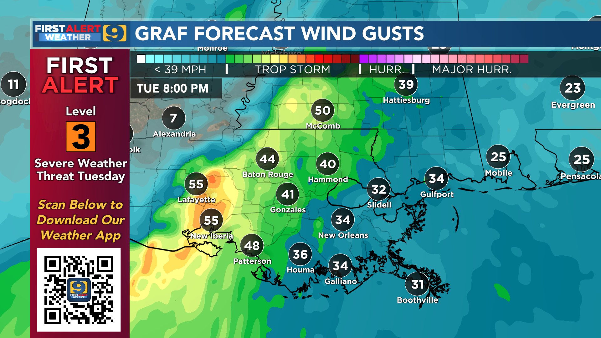 There will be a 60-70 kt low level jet 2500 feet off the ground tomorrow. Some of that is going to mix down to the surface, especially as the squall line moves through.