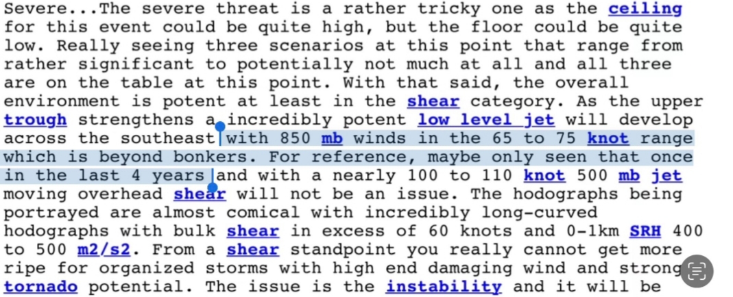 Heads up to any folks South of Houston or between Houston and Galveston. Things have only trended up for that area over the past 24 hours. There's a small area with a volatile environment over that area. Anything that can get going will pose a serious tornado risk. It'll likely be a messy storm mode and storms will be moving quickly. Just keep an eye out if traveling, especially.
