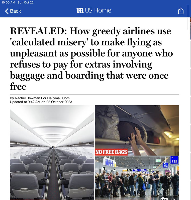 That sucks...that will give the window people first dibs on overhead space. I'm an aisle guy. Terrible idea.