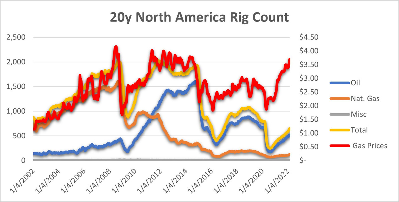 Notice the increasing trend in the rig count below. More wells are being drilled.