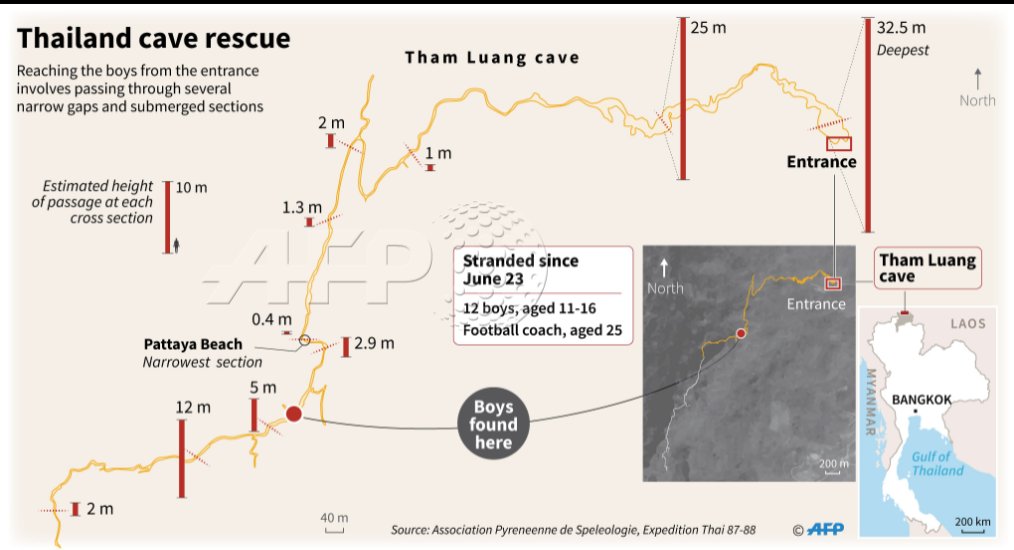 The boys were first found at Pattaya Beach, but the water rose and they had to retreat even farther into the cave complex.