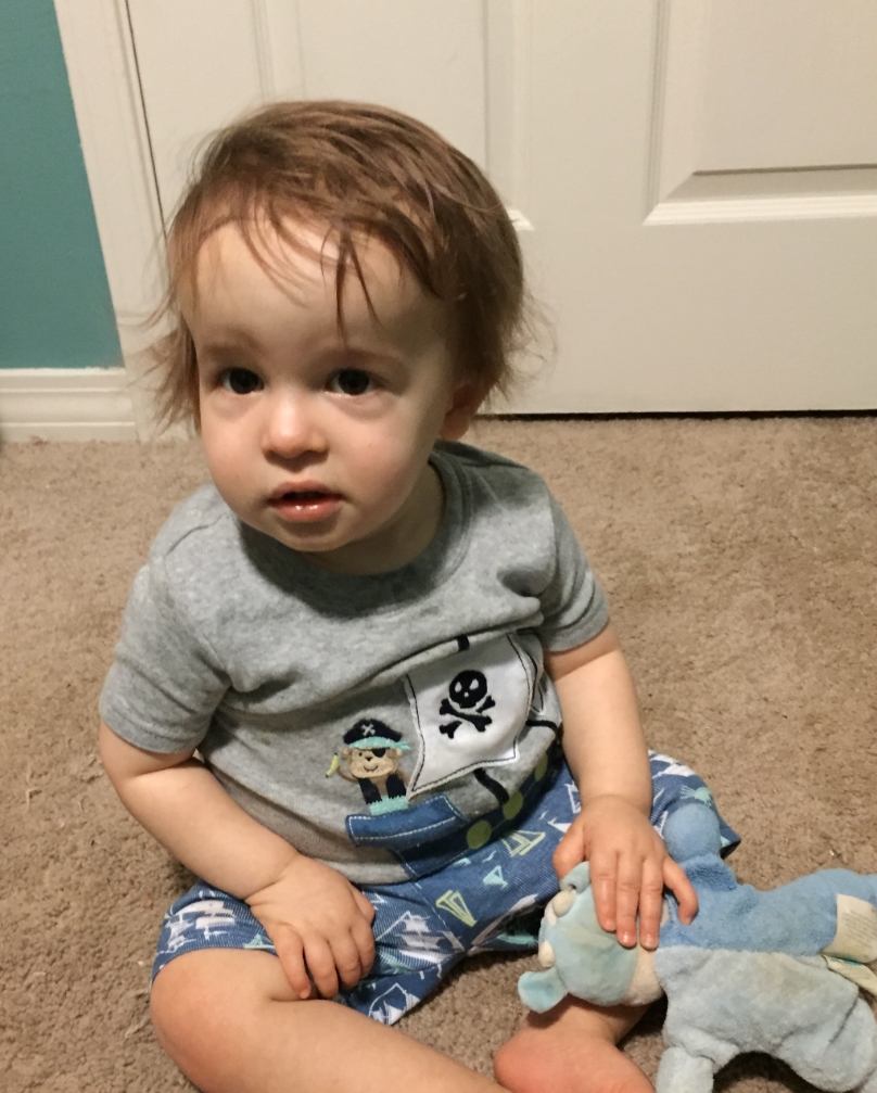 It's definitely a relief to be done with the helmet. Not quite out of the woods yet, though. The craniosynostosis (and the weight of the subsequent helmet) has caused a few gross motor delays, as well as torticollis (tightened muscles on one side of his neck). He's almost 15 months and not yet walking, and he didn't start crawling until a couple months ago. He's been in physical therapy for about 6 months and has made a good bit of progress since then, and I suspect he'll accelerate even faster now that the helmet's gone completely. Just in the last month, when he wore the helmet only part time, he's become much more adept at crawling and can pull himself up to stand. Also not saying anything besides "dada" yet, but it's still a little too early to determine whether he'll need speech therapy.