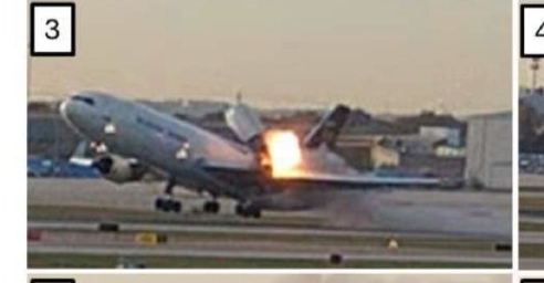 Some people are wondering how the number 1 engine (left wing) flew over the fuselage and ended on the right ride of the runway.