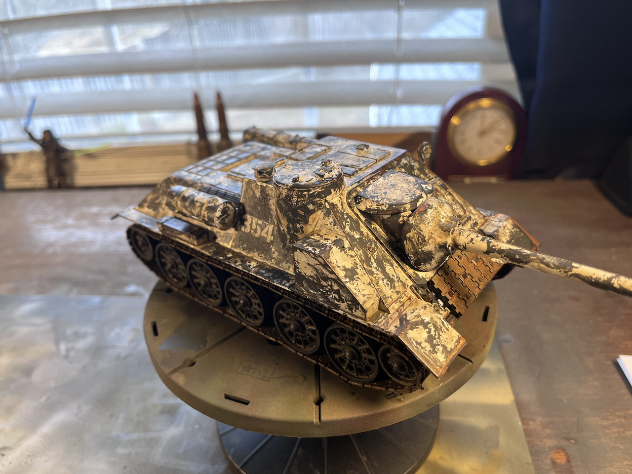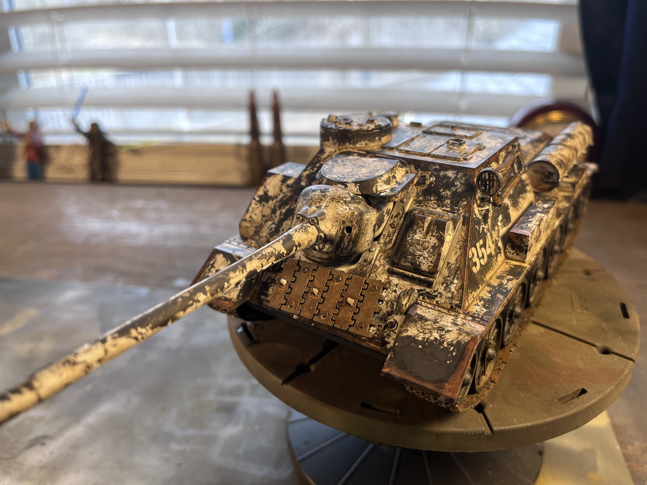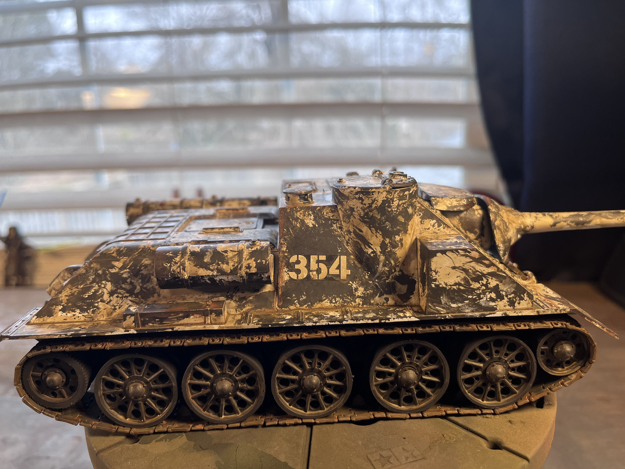 Thanks. I was going for the look of a vehicle that had been whitewashed at the start of winter 1944 and now it’s late winter/early spring 1945 and it’s just about lost all of its winter camo during the previous months of fighting across Western Ukraine, southern Poland, and now Hungary.