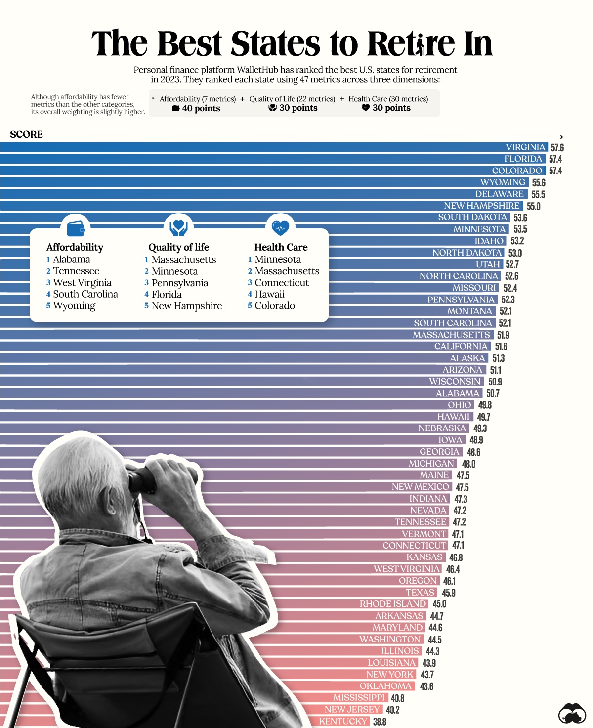 Most of those states at the top feature winters that would be daunting for an elderly person to endure. And in a state like Wyoming or South Dakota you might have to drive 150 miles to a doctor appointment. There are more things to consider than raw metrics.