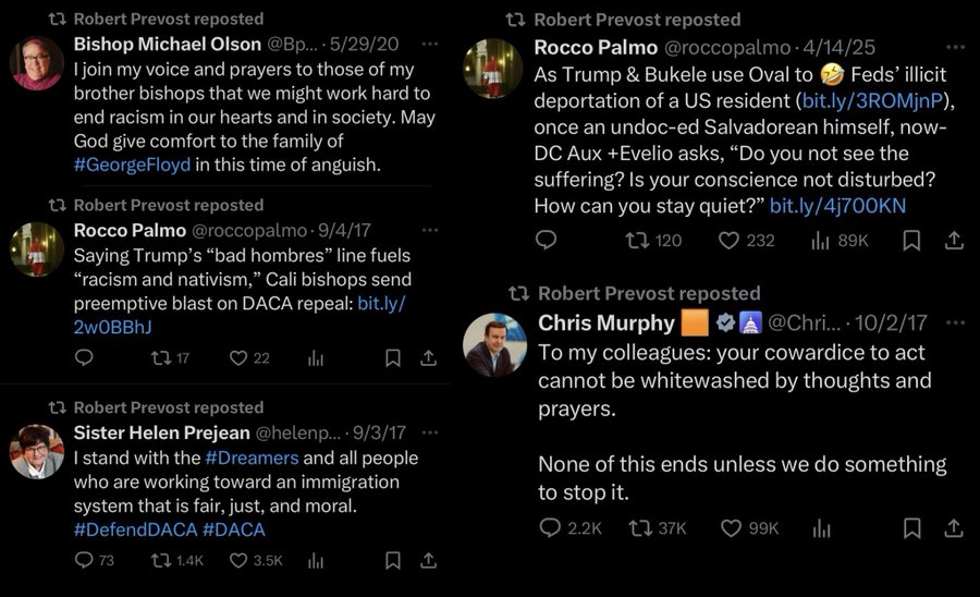Some quotes I'm seeing from Robert Francis Prevost, now Pope Leo XIV: