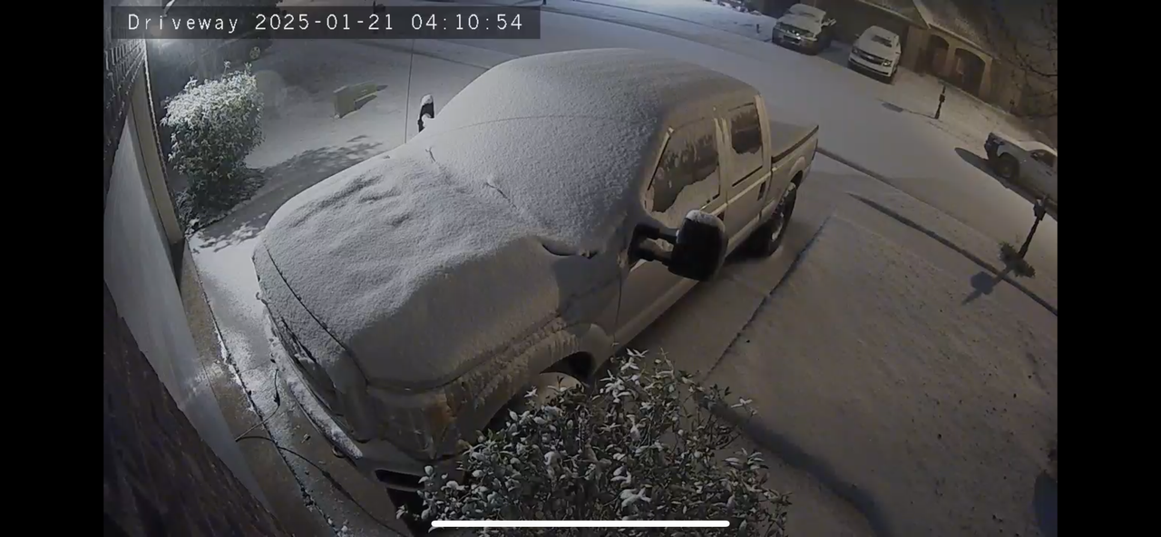 In Lafayette, woke up at 2:45 to sleet with a little snow mixed it, grabbed my GoPro stuff to try to do a long timelapse and in the ~15 minutes it took to set up it switched to only snowing. It’s occasionally pretty heavy, my grass won’t be visible in probably a few minutes time.