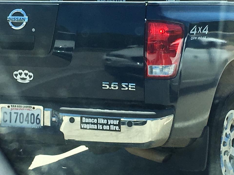 Was north bound I55 one day 2003, a shitty Ford Ranger had “I like lipstick on my dipstick” and “The lower I go the more she likes it”. Me, my old man and my uncle laughed about that shite for a while.