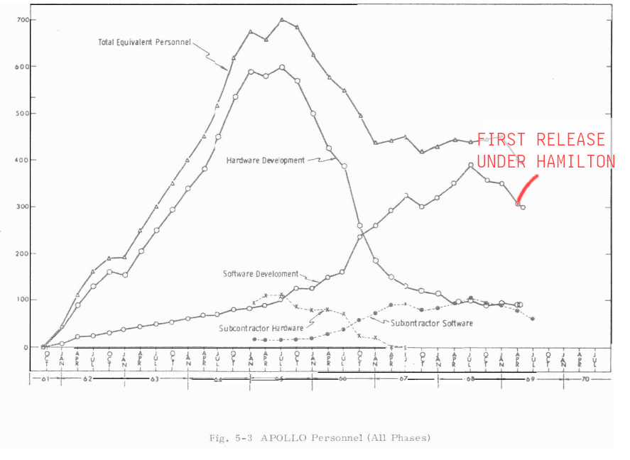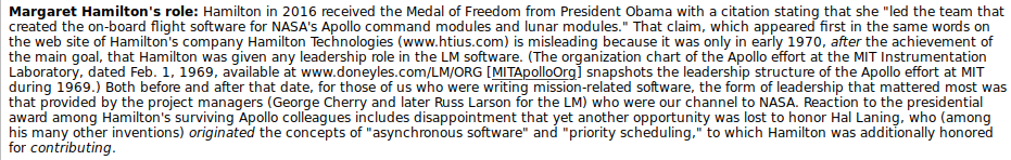 Margaret Hamilton standing next to the code she wrote for the Apollo missions