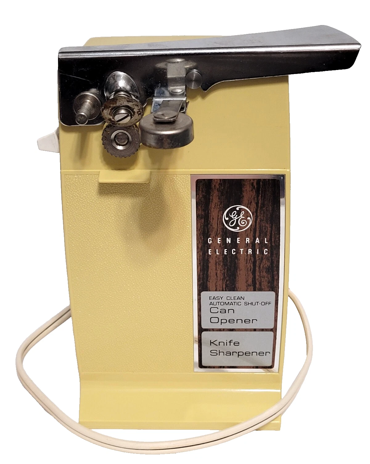 I'm not sure how old it is, but we have a GE electric can opener that my parents had when I was a kid. They bought a new one when they moved and I snagged it for our kitchen. I like the novelty of it, but it does stay in the pantry until we need it because it's ugly