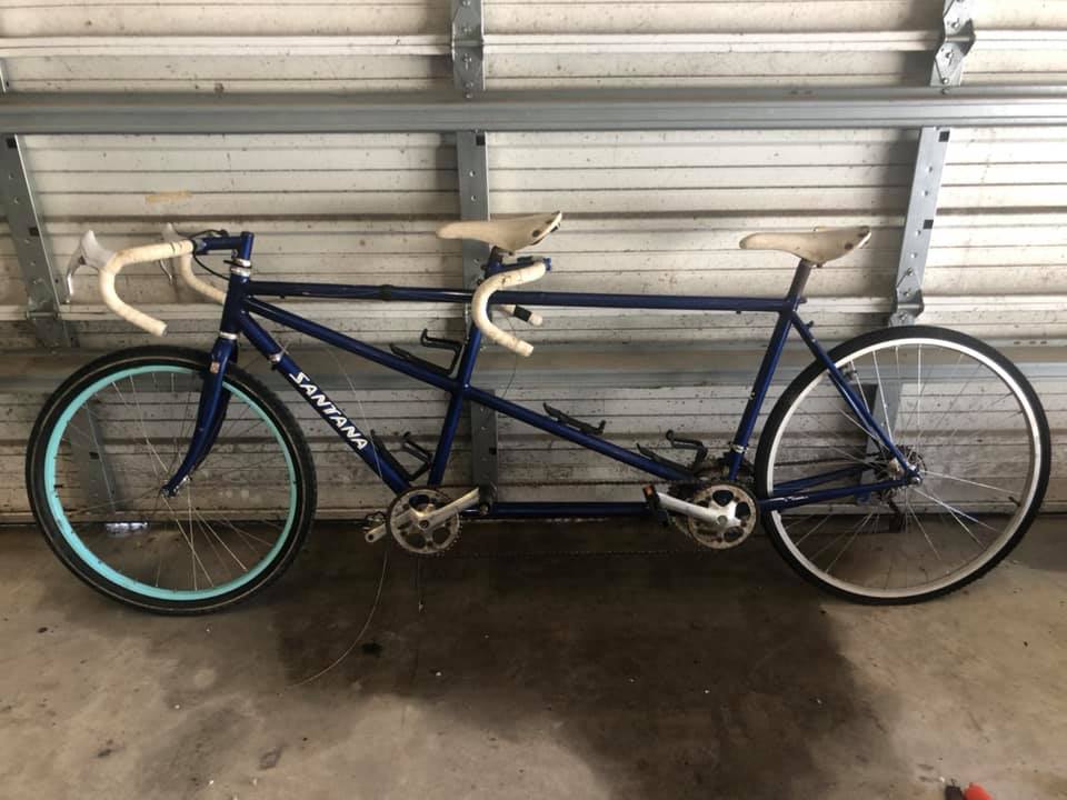 A few months ago I picked up a 1990 Santana Noventa tandem for $100. It was in pretty rough shape, all the cables cut, mismatched wheels, hardware missing, but I'm slowly getting it back going. I originally bought it as a joke and have no idea what I'll do with it once done but it turns out tandem bike people are pretty serious about it, some doing trips several thousand miles long.