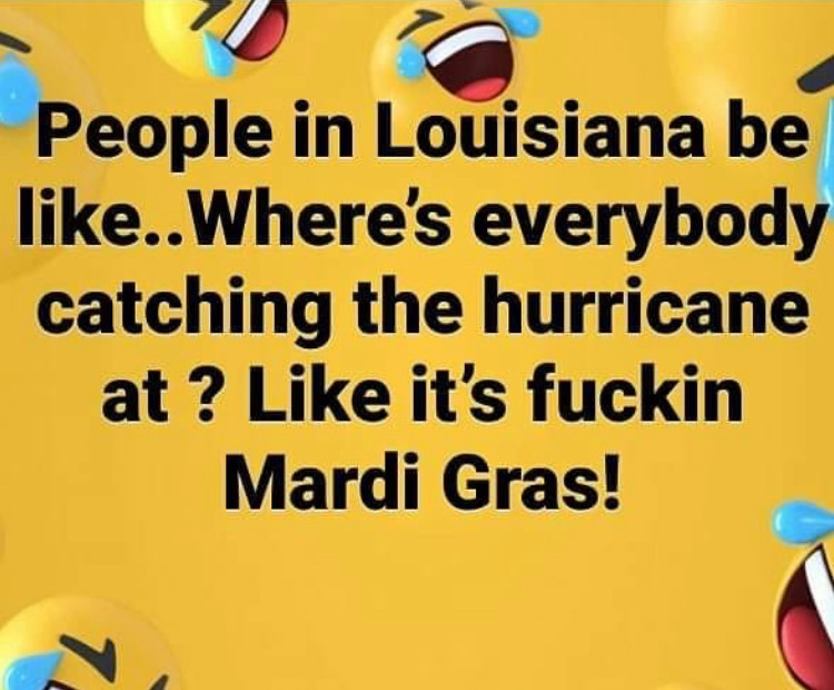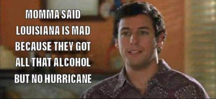 Enjoying company of family and friends during a classic hurricane party on a Louisiana Saturday night.