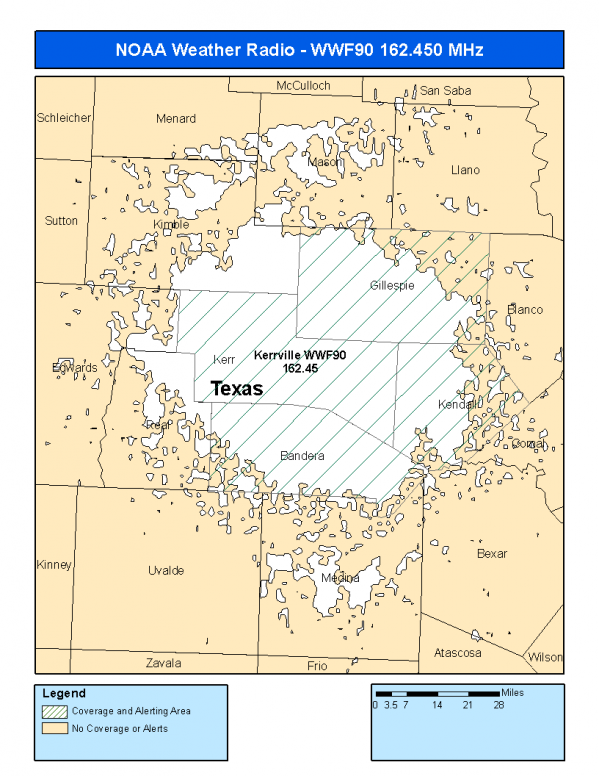 It covers all of Kerr county and parts of surrounding counties.