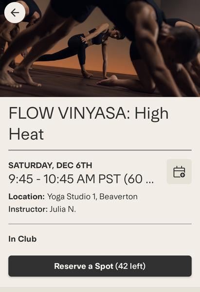 I land back in Portland this Friday night, and my first hot yoga class will be Saturday AM. Is anyone else planning to start?