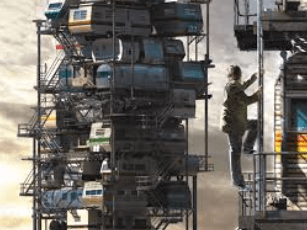 Looks like they just stacked a bunch of shipping containers. Kind of like this: