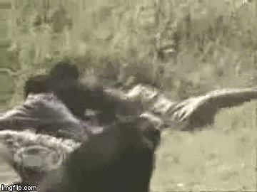 The fact you think a short clip of a 50-60 pound chimp taking down a 160+ pound grown man proves your point shows just how badly you're grasping at straws.