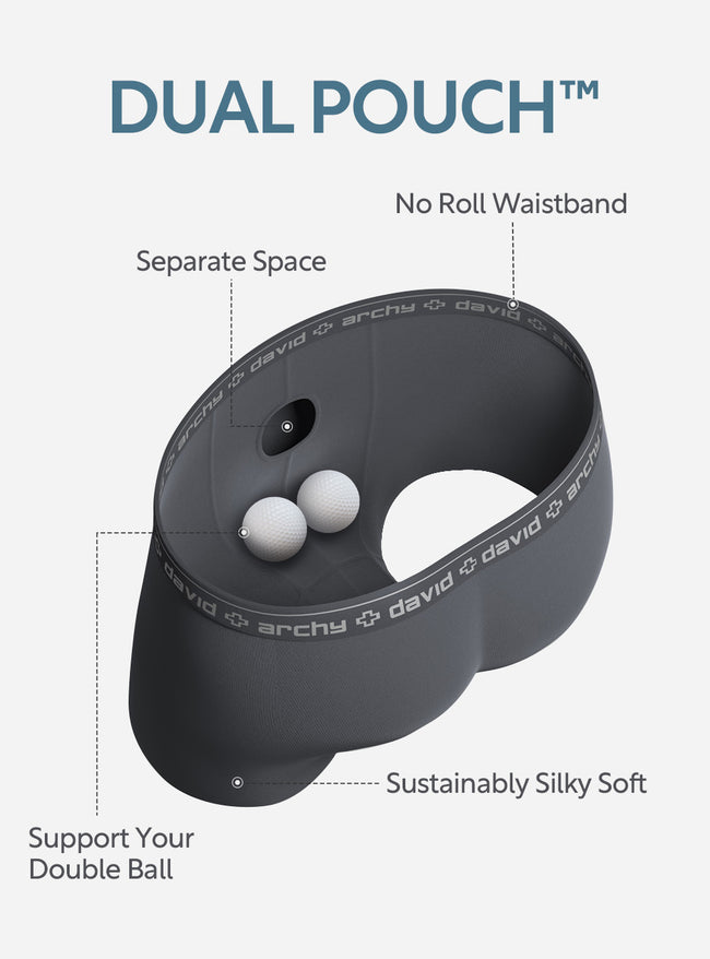 David Archy dual pouch to keep things separated down there. No more peeling your dong off the ballbag.