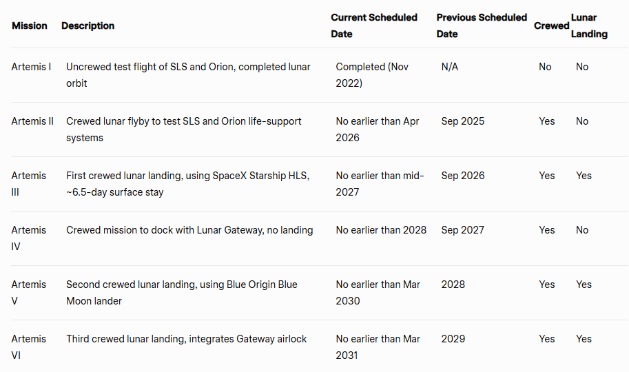 We are supposed to be back on the moon with the help of Elon by the middle of 2027. I asked Grok to put together a table of the Artemis events: