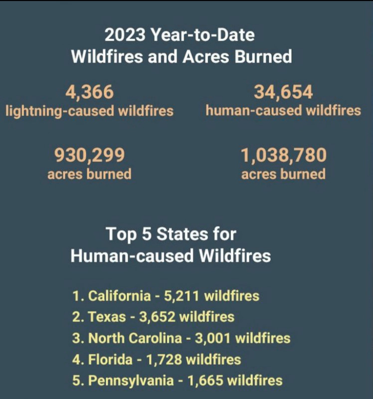 Here's an interesting graphic. Nationwide we are way below average acres burned for the fire season. That number of human caused fires is alarming.