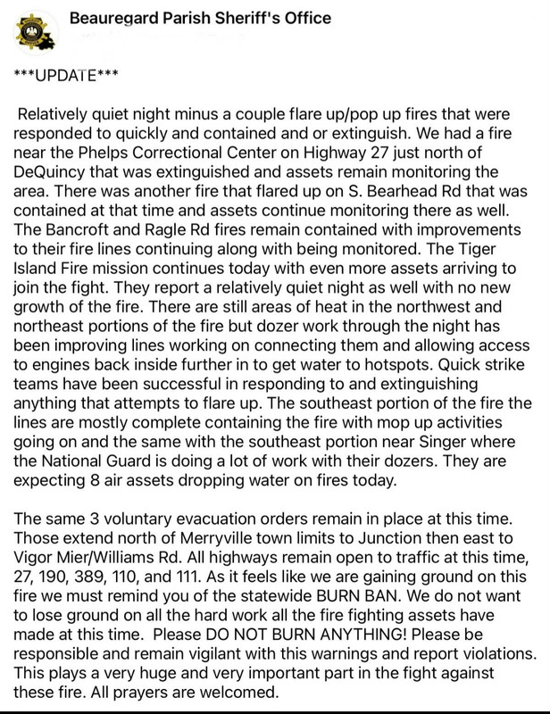I think you folks should be proud of the leadership and response to these fires. That sheriff seems to want to do the best he can, which is more than half the battle. Seeing the State and Federal response to your area is refreshing. They haven't spared much, if anything in fighting this.