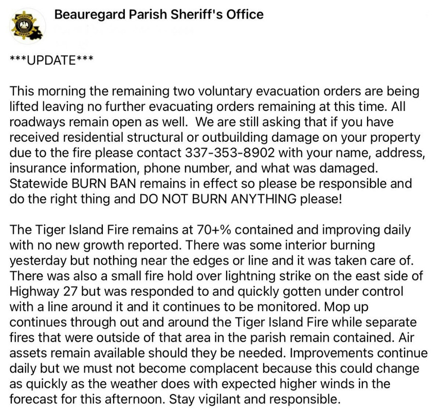 Four air support aircraft were released from DeRidder yesterday as was the fuel detachment for the National Guard. This is a good thing.