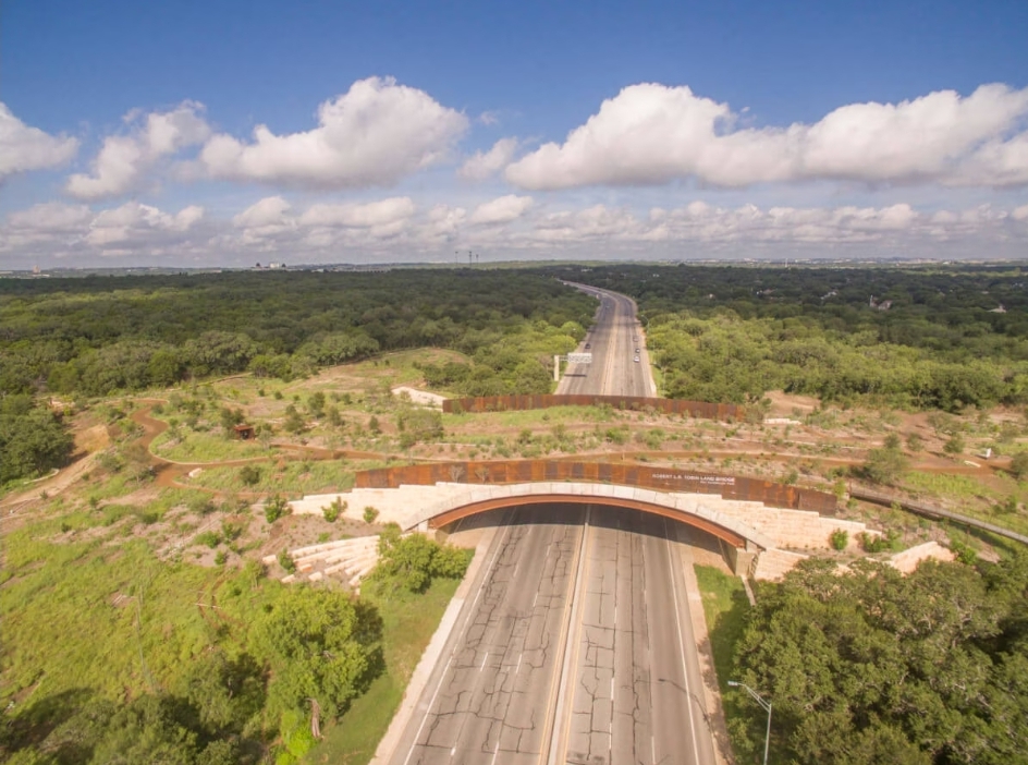 Houston is building one of these in Memorial Park. The double-lane boulevard tunnels underneath the huge 'land bridge'. I'm skeptical about how much wildlife is actually in that area, but it looks pretty cool watching them build it.
