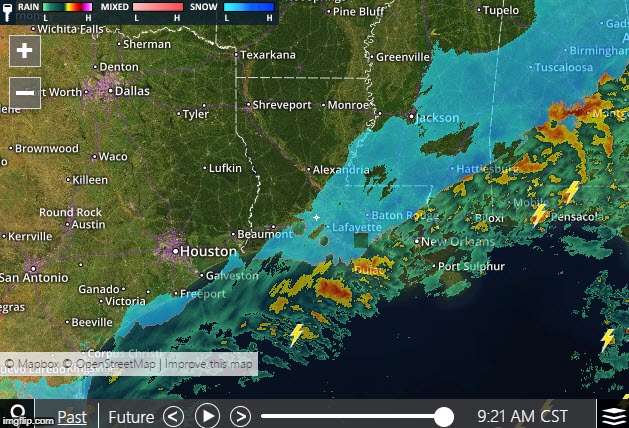 New Orleans is just wet and cold, some small amount of sleet, no snow. So we are all at work.