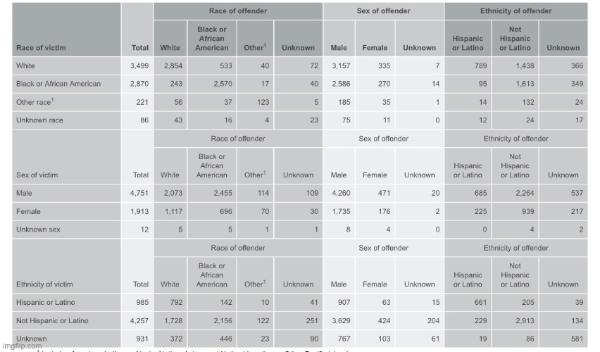 The data is posted to show that it’s overwhelmingly more likely a white violent crime victim will be experienced at the hand of a white perp