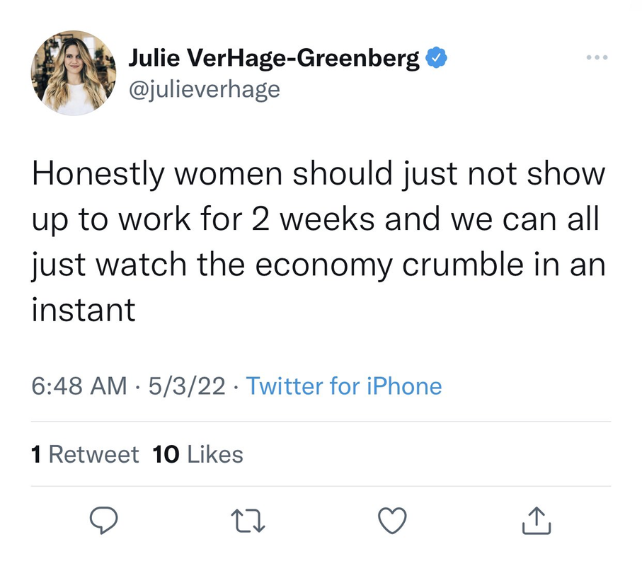 Only a third of the economy will crumble because they only earn half of what men earn.