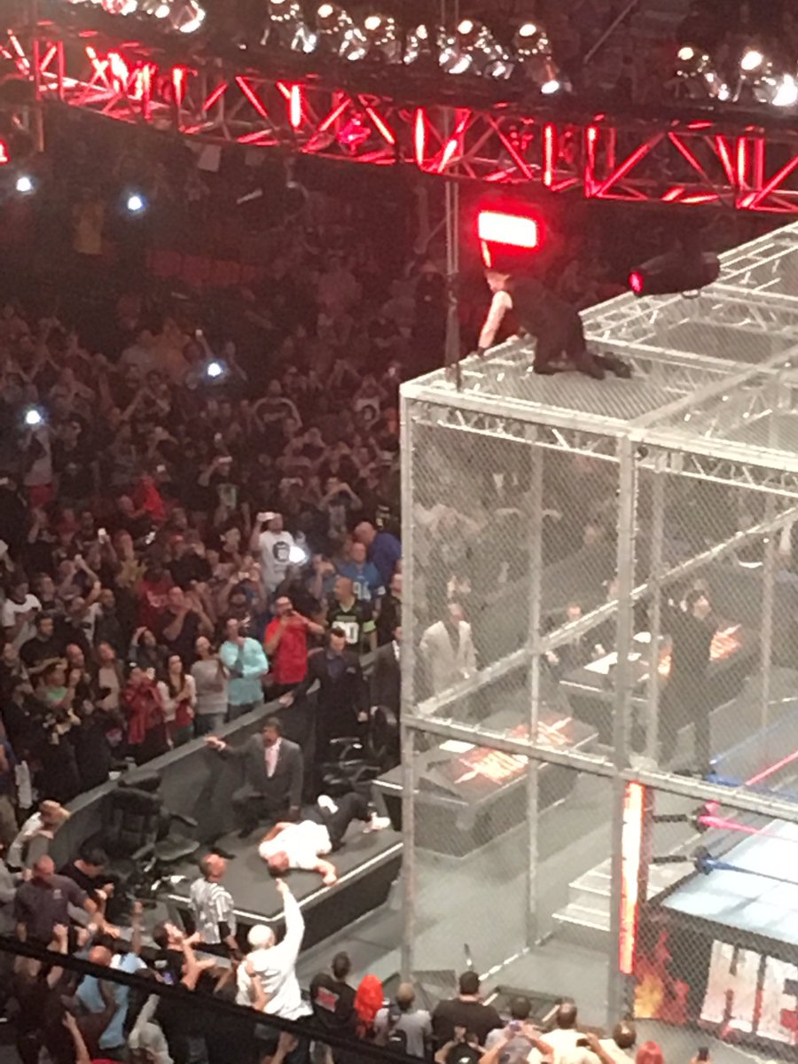 Glad the referee moved that pencil or else @FightOwensFight driving @shanemcmahon through a table could have really hurt #HIAC