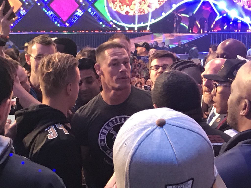 Should’ve spent more on tickets. The thing hanging over the ring is completely blocking my view of the stage. Lesson learned