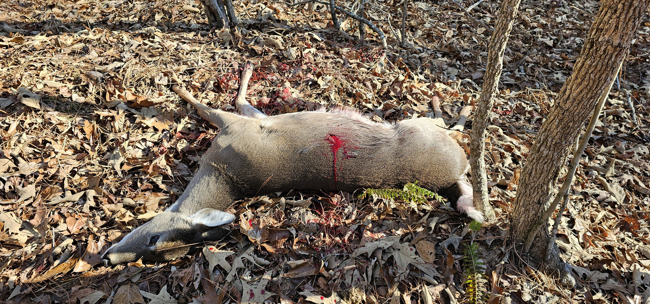 My buddy just stuck a doe in the woods.