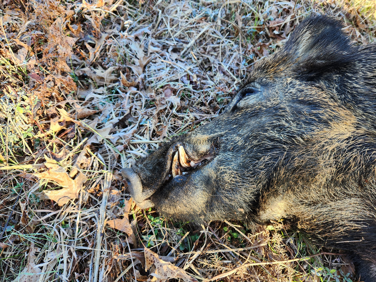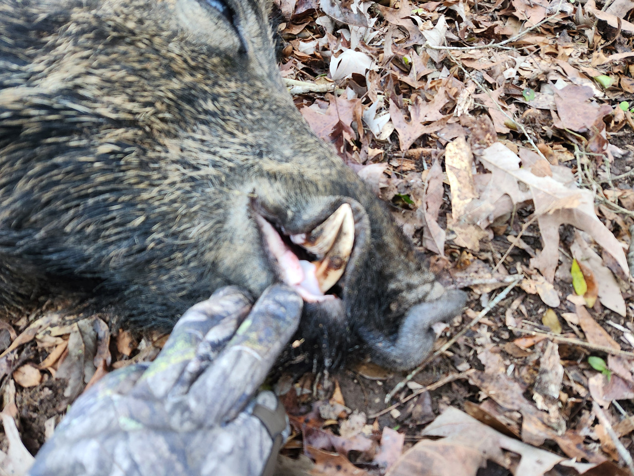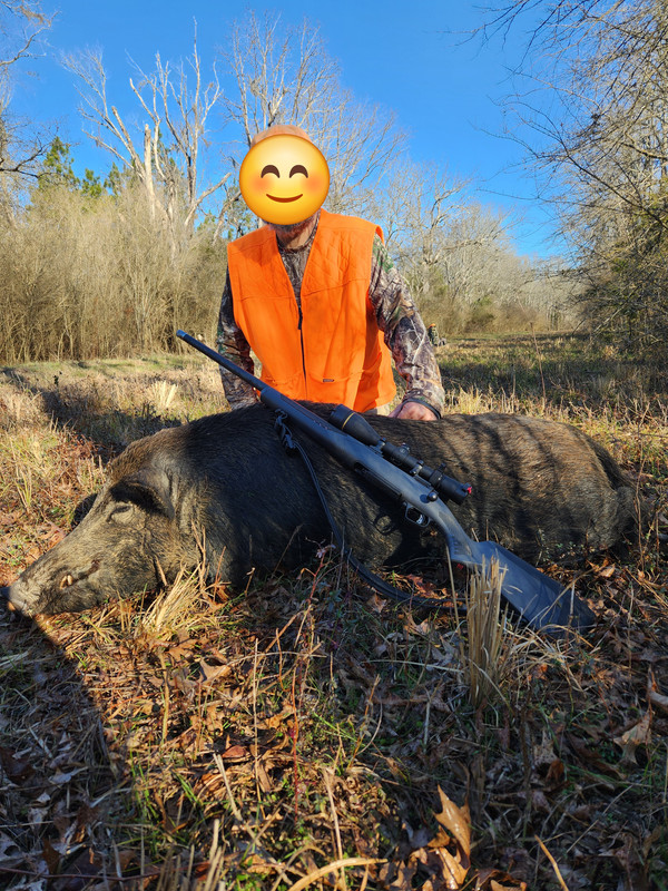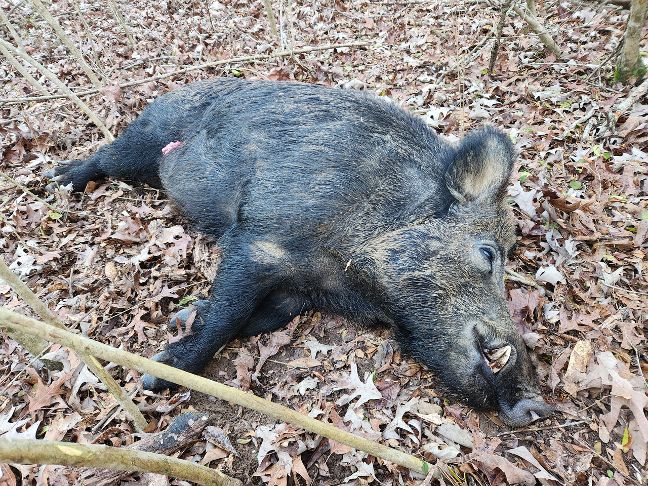 Congrats. Just make sure any parts of this or any size wild hog is very thoroughly cooked! They commonly carry brucellosis, trichinellosis, salmonella, E. Coli and other diseases/bacteria! I would also take precautions in field dressing and handling of the hog such as wearing protective gloves and eye protection from the hogs body fluids.