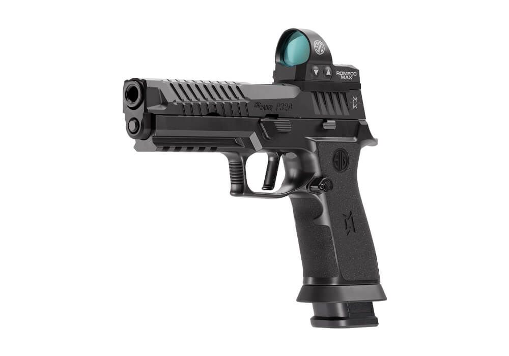 Introducing the SIG SAUER P320-MAX SXG –– an all-steel 9mm striker-fired pistol, engineered with a performance-driven feature set crafted from the knowledge of a champion –– exclusively designed in collaboration with Captain of Team SIG, Max Michel. Designed for dominating competitions at all levels, the P320- MAX SXG features a completely reimagined slide with custom wraparound serrations and an SXG all-steel frame for next to no felt recoil. Complete with (4) 21-round magazines, a Springer Precision magazine release, 5” match-grade bull barrel, Custom HOGUE alloy grip panels, and a pre-installed ROMEO3MAX reflex sight, this out of-the-box competition-ready pistol delivers unrivaled capability, speed, and accuracy.