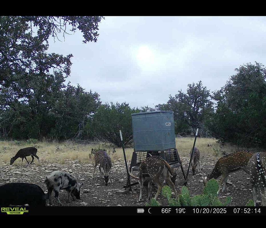 Lots of critters out this am. Ended up getting a nice video of a good axis and shooting a few pigs this weekend. Headed back to Houston this am and saw a great Axis on the way out the camp.