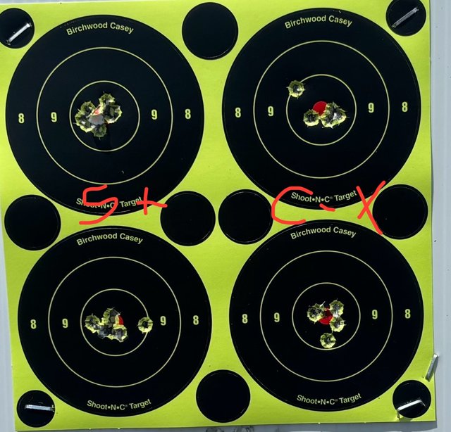 Here are some groups from my range trip today. This is my CZ 457 MTR that is completly stock. The 6 groups on the left are SK Standard+ and the 6 groups on the right are Lepua Center-X. Some of them are 10 shots and the rest are all 5 shots.