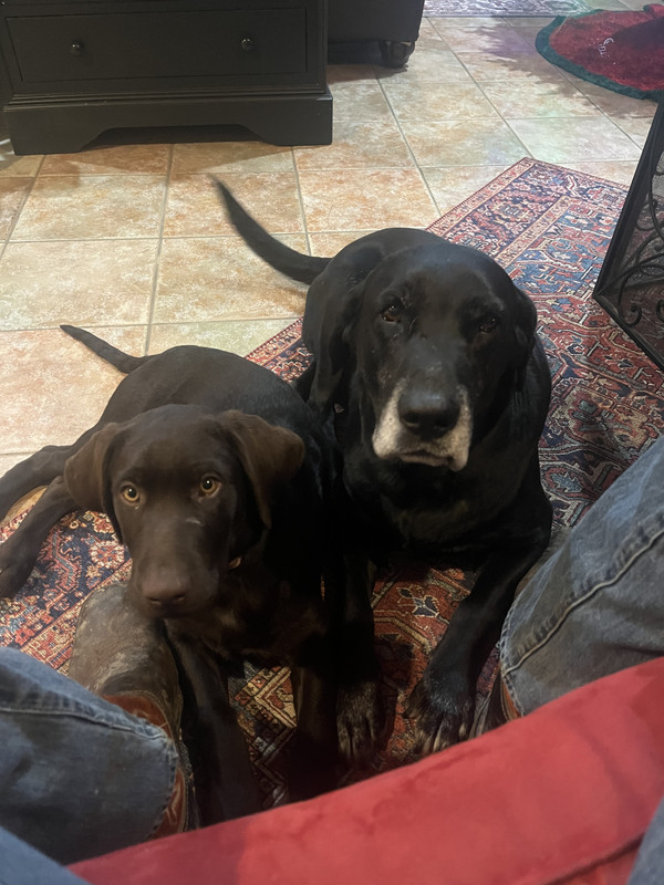 Here's Buddy (and his heir apparent). I have a picture of both of ours when they were puppies, the night of the auction. I'll try to find it.