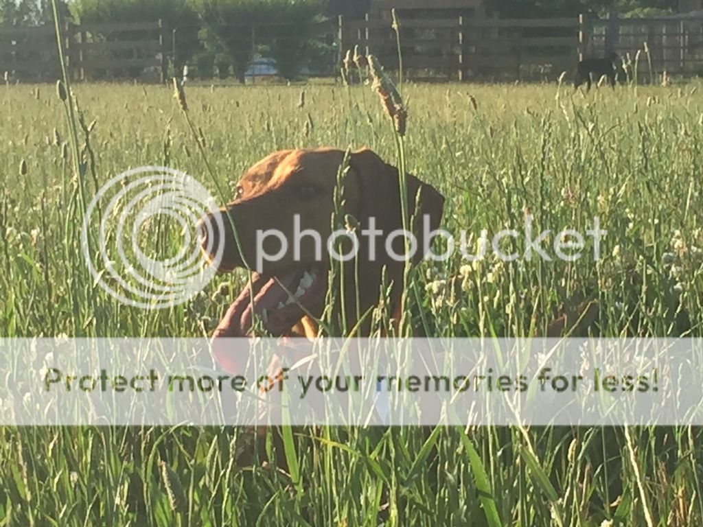 lol. my cousin has a 1 year old GSP. She torches him. His arse is grasping for air while she's waiting for the next frisbee or tennis ball throw. In a straight line race, sure the greyhound would have out them both, but if we are playing chase: Vizsla 99% of the time over the greyhound. Too agile and quick. So yeah, I'd absolutely take you up on a foot race between mine and yours. Let a squirrel loose 30 yards away and Penny would assuredly take your money.