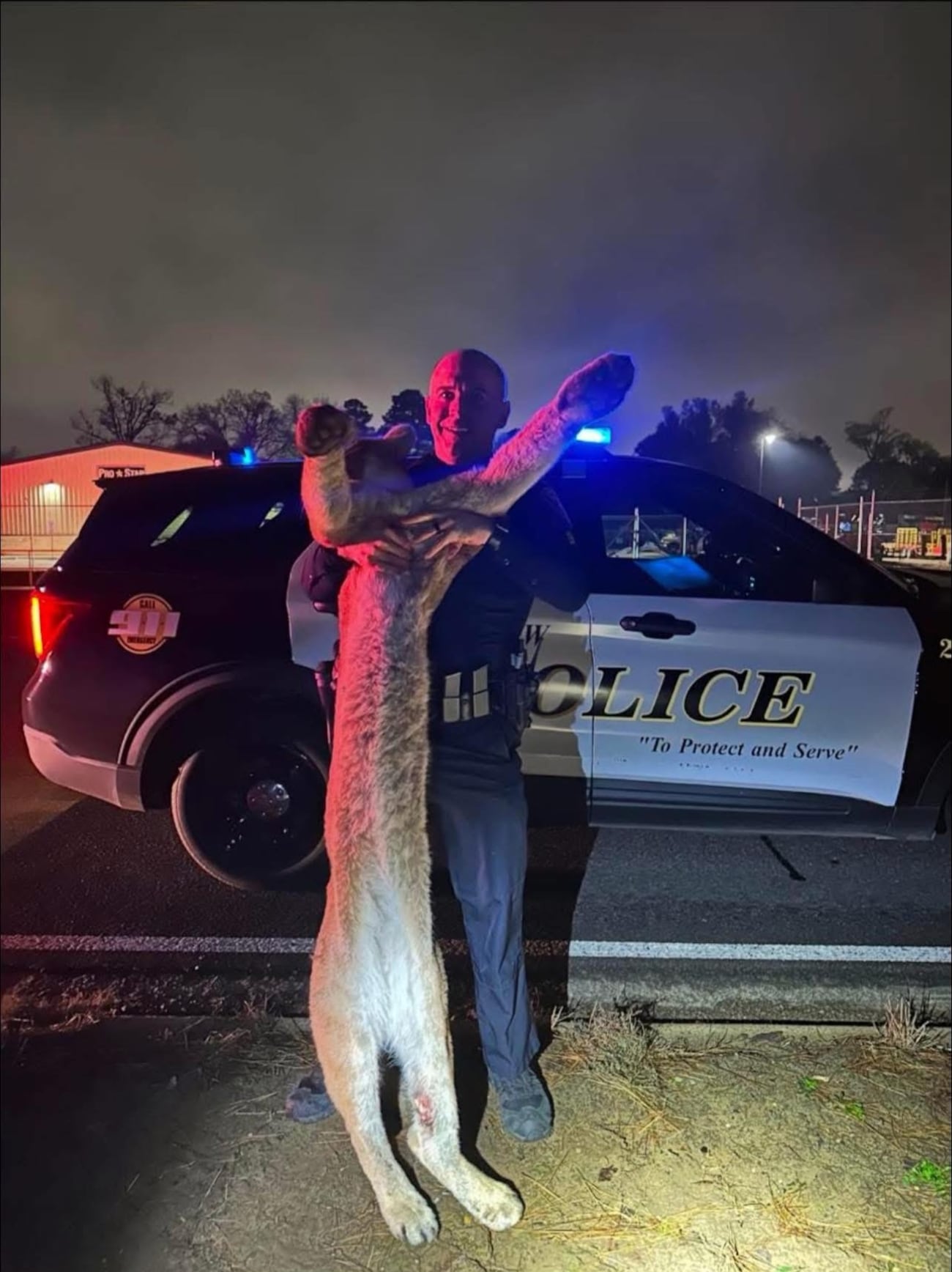 Not sure if it was posted here, but an east Texas (Longview) cop ran over a mountain lion in December. Pics were all over the news.