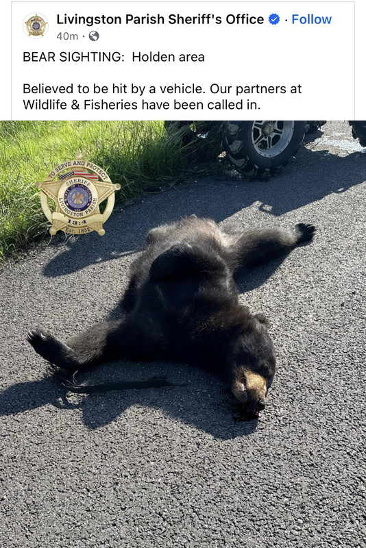 I saw that a black bear got killed on the interstate near holden, I might be the same one?!