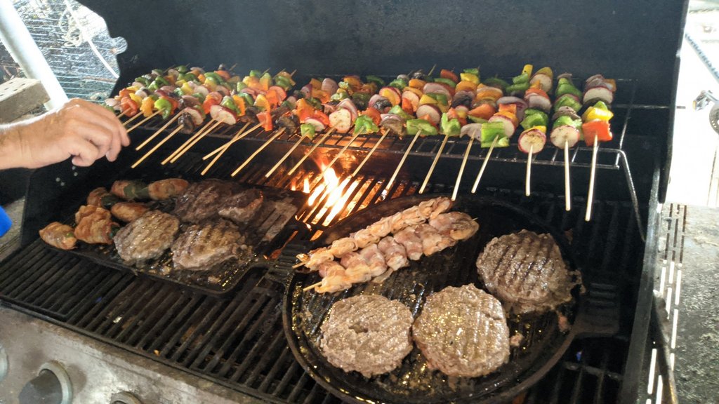 I also like to hover chicken and sausage over the griddle to keep a nice indirect heat.. and while the fat drips it turns to smoke and not a flare up