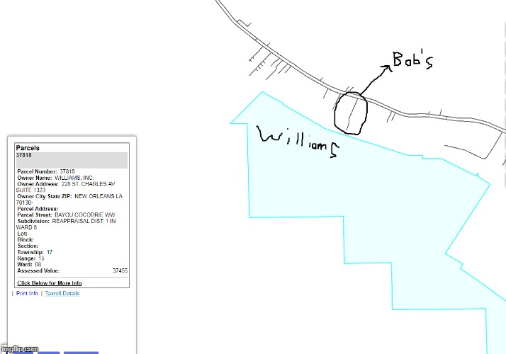 There needs to be provisions to pull the wasteland/marshland tax option from these companies that are doing this to south Louisiana. Time for our politicians to stand with the people of Louisiana, not out of state corporations with high dollar lawyers that twist the courts to their favor. Hell, there are drainage pumps there, why doesn't the parish expropriate that canal as a drainage canal. I'm sure they could have Williams retain the mineral rights. Better yet pass legislation to uncouple the bottom ownership from navigable water surface rights and it would not hurt anyone. At least then there would be a reason to allow these corporations to get away with taxes that are cents per acre. As it stands now there is no economic or other reason to have that property tax option.