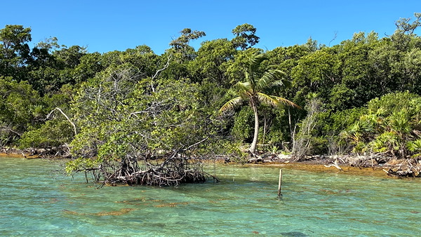 Caught my PB this time. About 8 pounds or so I guess. Lotta fun. He made about 5 massive runs. The Bonie got wrapped around middle post in the top pic and got him off that twice. Then he ran around that little Mangrove island to the left and in front of the big Mangrove island and buried himself in the sticks on the other side. The boat captain got us in good position and my son and I luckily unthreaded him from the sticks and he took off again and my son snagged him with the big net. Glad we had 20 pound tippet on 16 pound leader. Rigged up for Permit as well. He was a tough smart dude. We did a lot of wade fishing on the flats and wore this old man out.