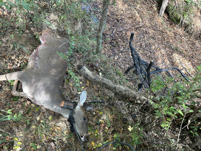 Doe down. About to see if the gym translates to the outdoors. Going to have to drag in and out of the creek.