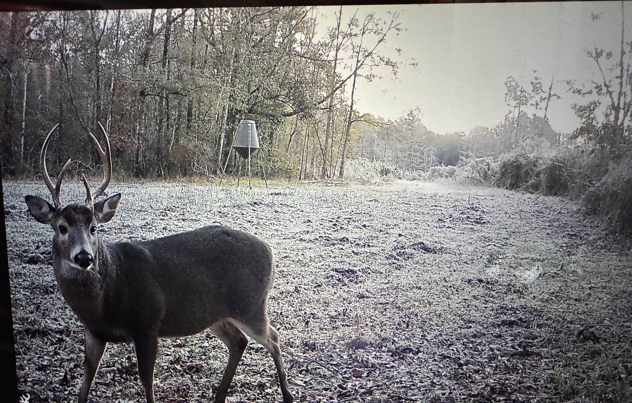 56 degrees in Gillsburg, MS. Weather is far from ideal, but this morning is my last sit for a few days. This rascal showed up a little less than 2 weeks ago or so & has been relatively frequent. Age before beauty, & this morning’s hunt is The Road Warrior or nothing. Mathews Lift X 29.5” with the Trypans. Good luck!!