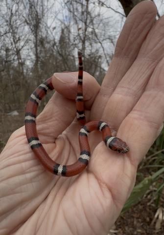 Spent a couple days running around North La. flipping tin with the Florida boys. 42 snakes/12 species including my lifer La. milk and Eastern coachwhip. We had a grey rat triple-flip and 4 double-copperhead flips. Louisiana milk snakes are technically no longer their own subspecies - they’re just considered Western milks now…though most locals will always call them La. milks. This one was in an area where Western milks and Red milks overlap and was an intergrade - pretty much looking like a typical La. milk except for a red head instead of a black head. Yesterday the guys hit another spot without me (I was driving to Dallas) and got 3 more La. milks!