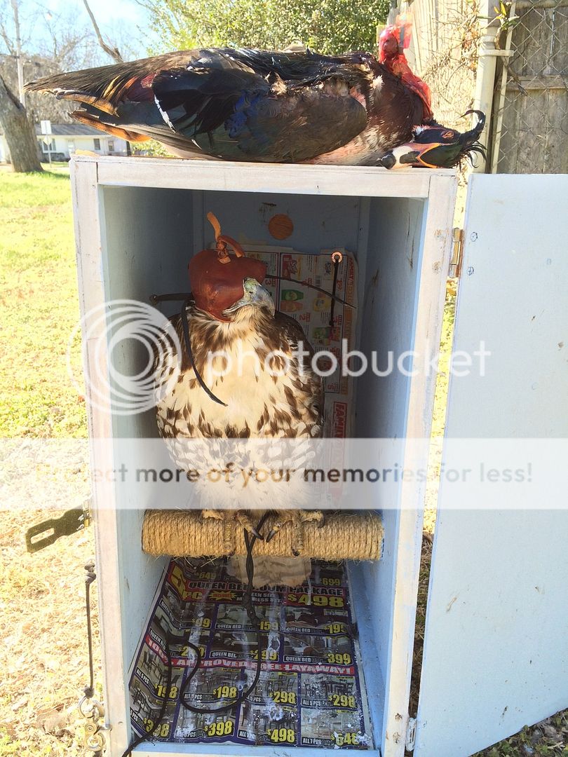 Caught a wood duck with my hawk Saturday. It's my first time catching a duck. It's a pretty rare feat for a red tail. They're not really geared for duck hunting. We just got lucky while squirrel hunting and flushed a group in the perfect position.