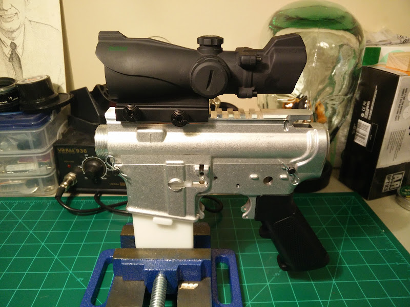 Starting with this: Tactical Machining 80% lower with a stripped upper still in the white. Planning on clear anodizing them at home.