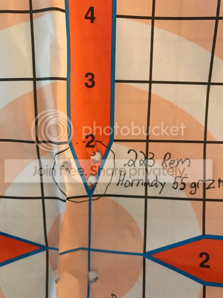 Went with a Nikon P-223 1.5-4.5x20 optic in a Burris PEPR QD 1" mount. This is the best group so far but I'm sure with match grade ammo it'd do better.